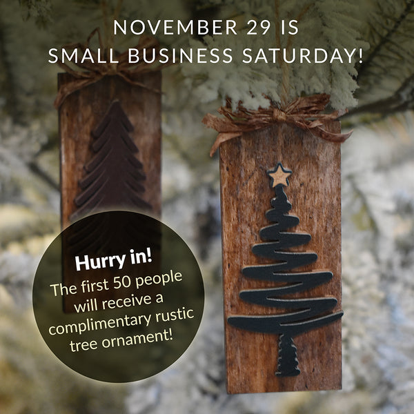 In appreciation of your support, the first 50 customers will receive a beautiful, rustic tree ornament! Also, for every $10 you spend, you’ll receive a raffle ticket for a chance to win a special prize!