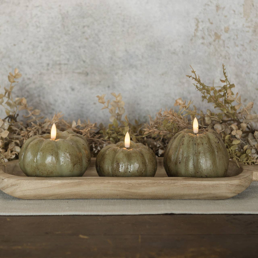 3" GREEN 3D FLAME SHORT PUMPKIN CANDLE