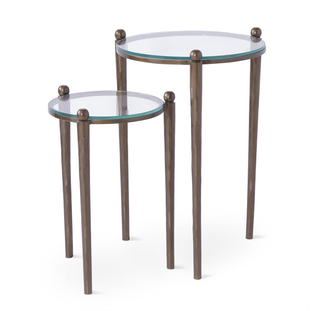 Set of 2 Antique Gold & Glass Nesting Side Drink Tables