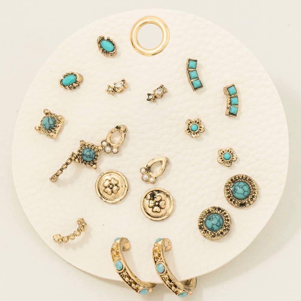 This pair of earrings features a fashionable assorted western boho turquoise set style. Witness the transformative power of accessories as this piece effortlessly redefines your fashion narrative.