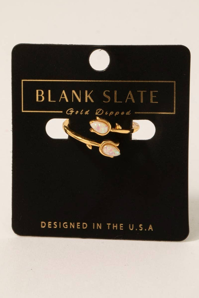 This ring displays a vibrant gold dipped rhinestone tulip style. Experience a burst of creativity in accessorizing as this piece effortlessly sets the tone for your unique style. Ring Size 6.75 80% BRASS 20% GLASS