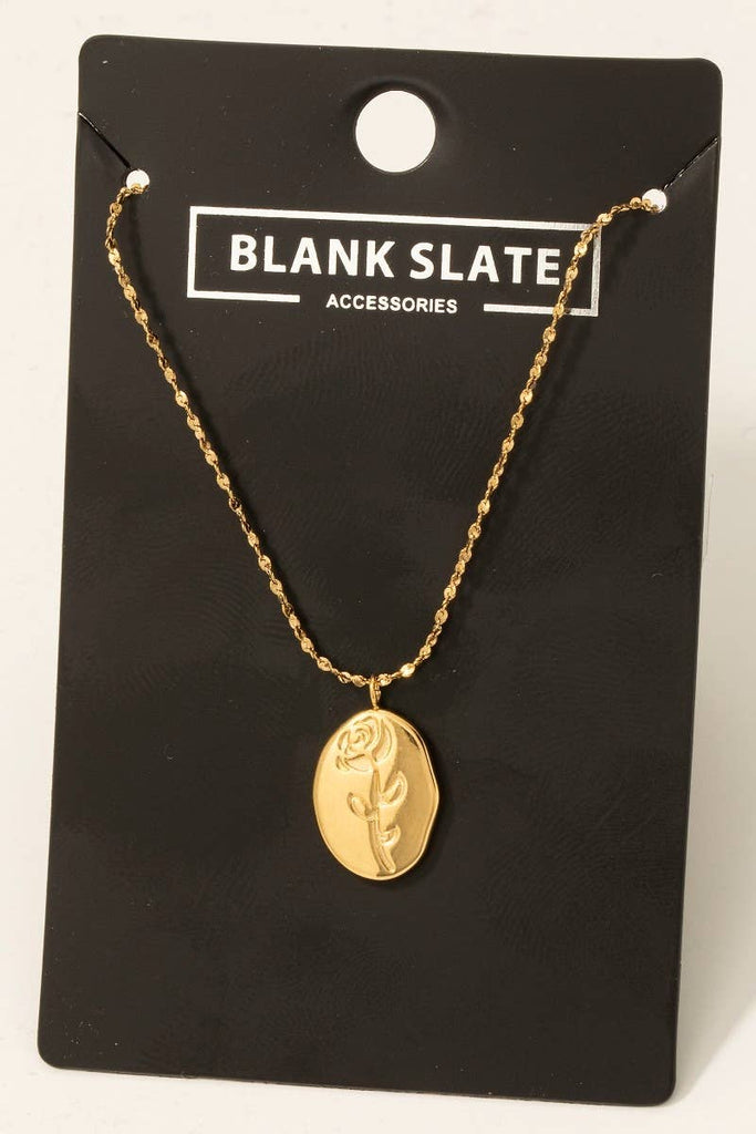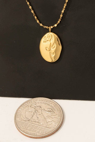 This necklace introduces a stunning stainless steel rose engraved pendant style. Embark on a journey of sartorial refinement as this necklace effortlessly complements your fashion sense.